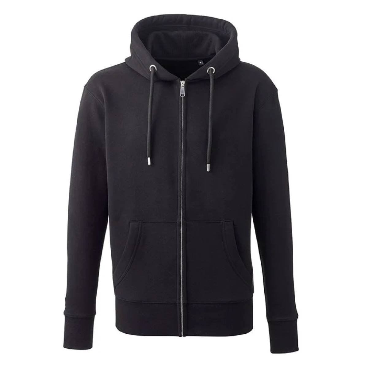 Shaped to fit. 320gsm. Peached fabric, soft-feel finish. Waffle knit hood. High polished, nickel free eyelets, zip and drawcord ends. Polyester dyed to match tubular drawcord. Concealed zip. Brushed fleece inner. Twin-needling detailing creates a high quality finish. Cut and sew two by one ribbed cuffs and hem. Kangaroo pouch pocket. Self-coloured neck size label.