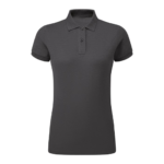 Women’s feminine fit polo. 2 button placket. Short sleeves. Side vents. Knitted collar and cuffs. Machine washable. Product contains no branded neck label. Removable Kimble or looped garment tags. Inner seam label holds important product information on one label with a second label containing brand information which can be cut-away. Please note old stock may contain a fixed branded labelc.