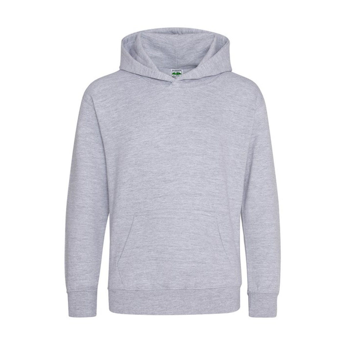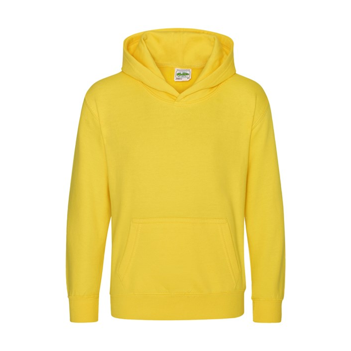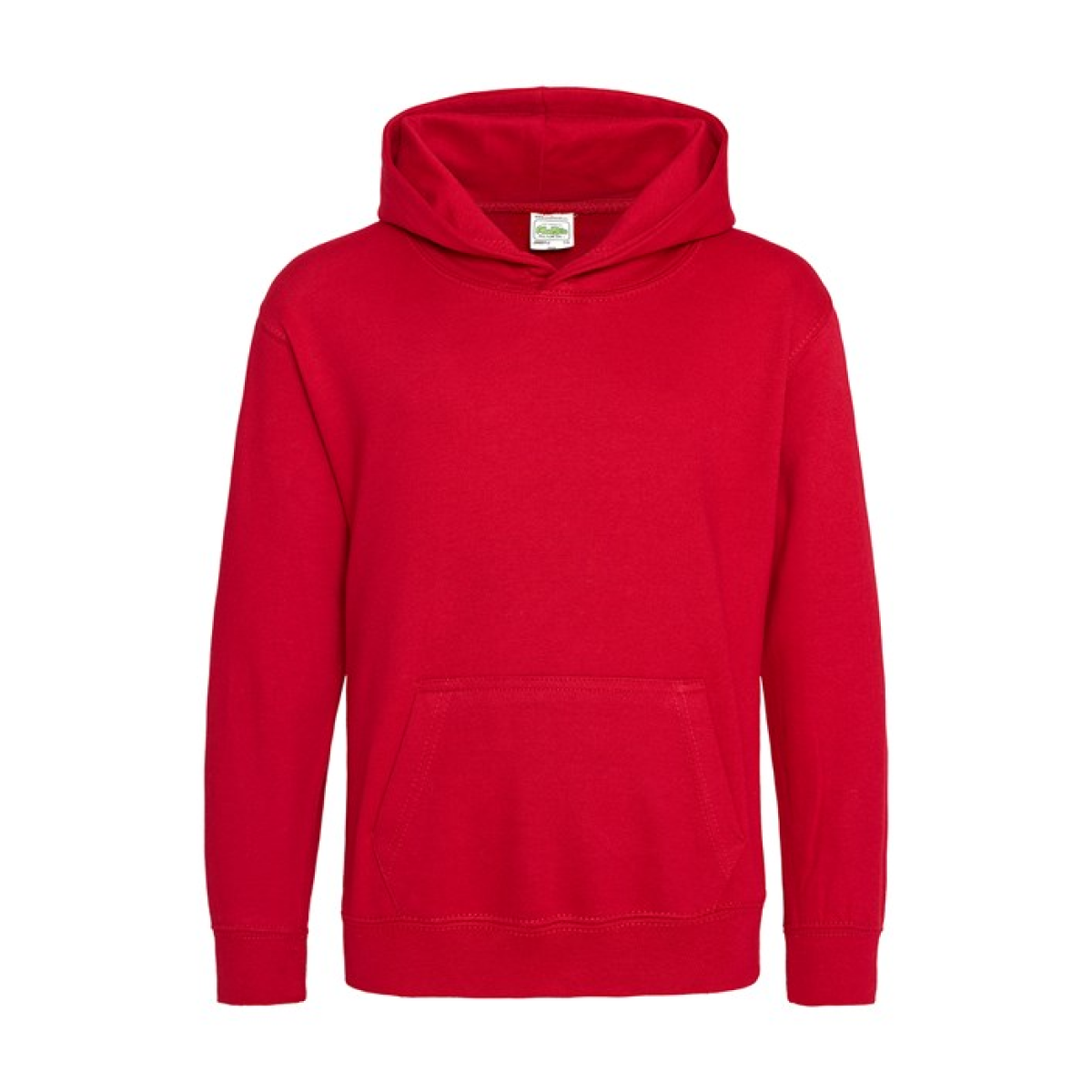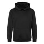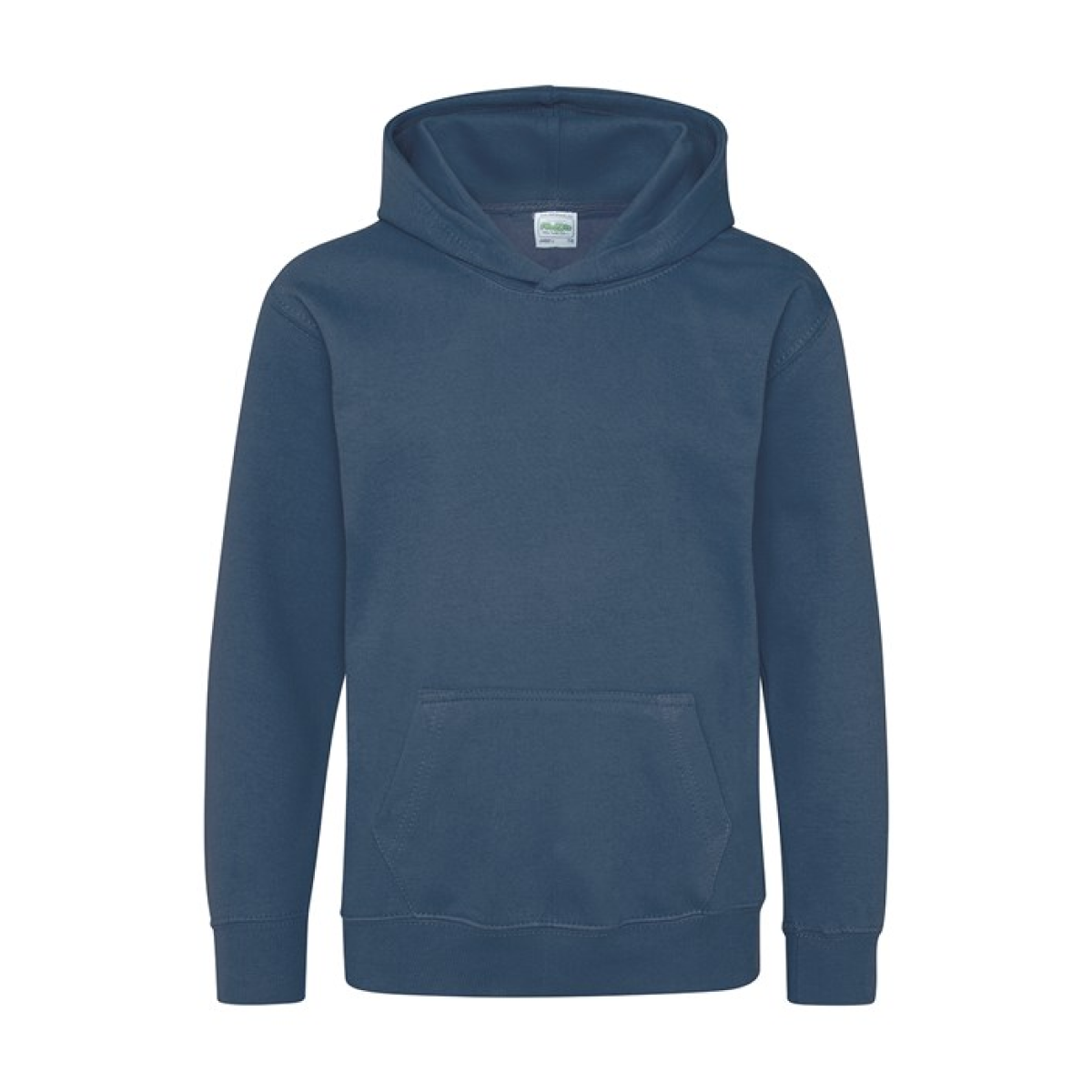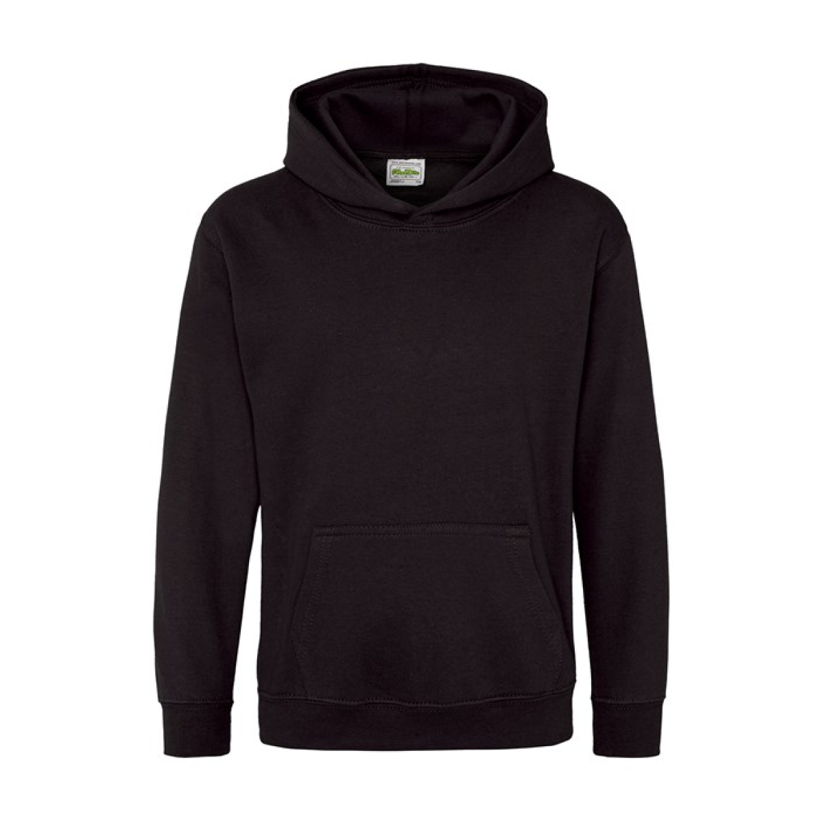 Single Jersey back neck tape for comfort. Double fabric hood without drawcord, in line with European childrenswear legislation. Front pouch pocket. WRAP certified.