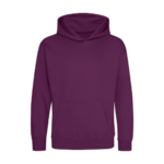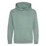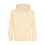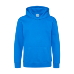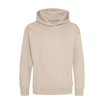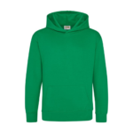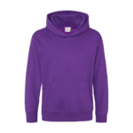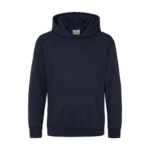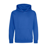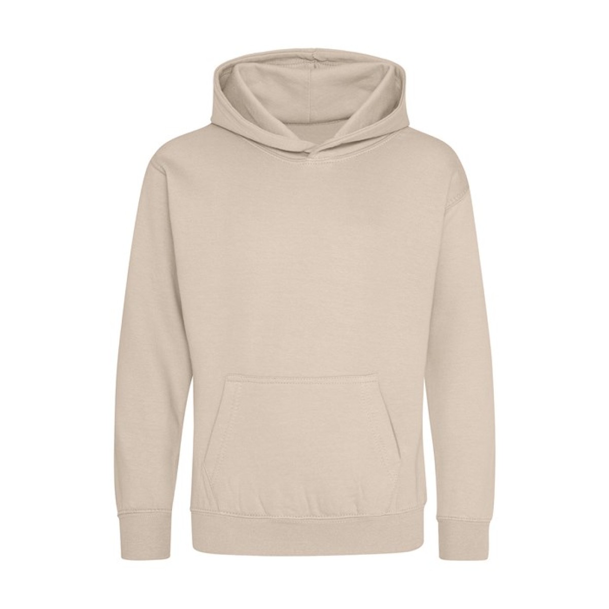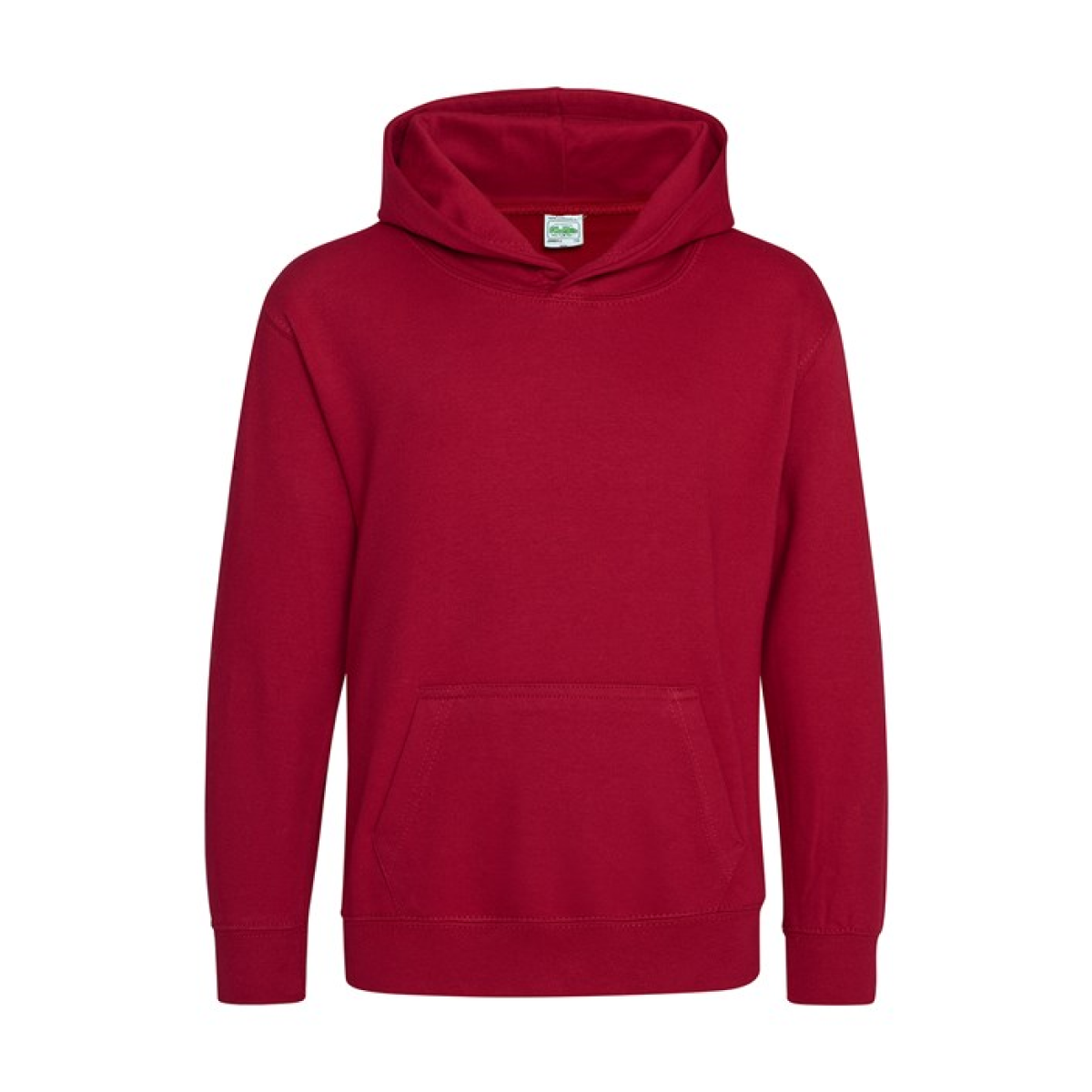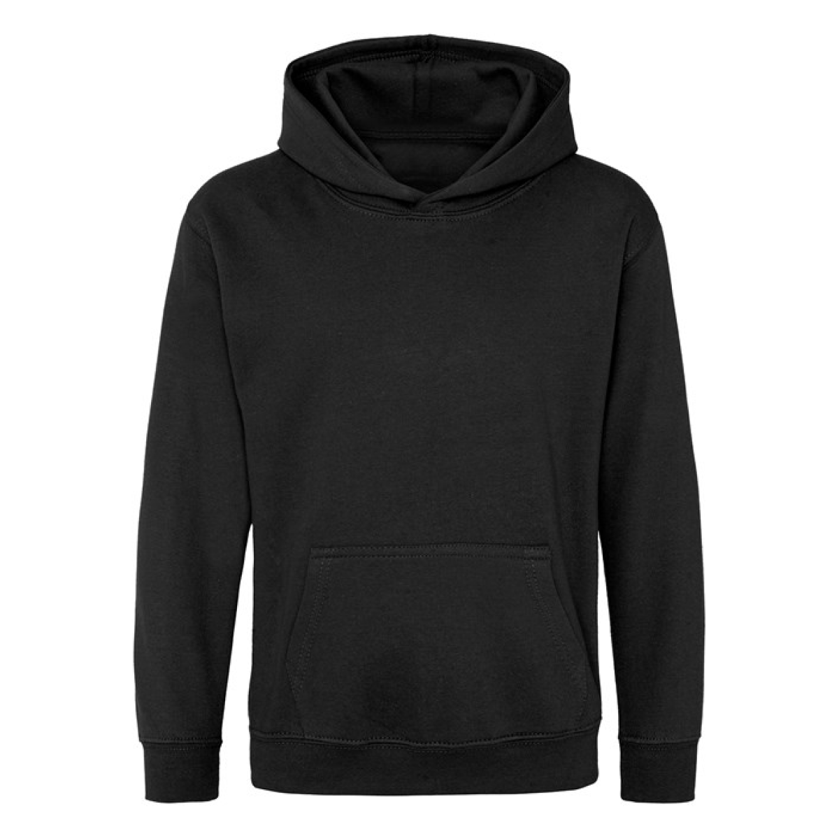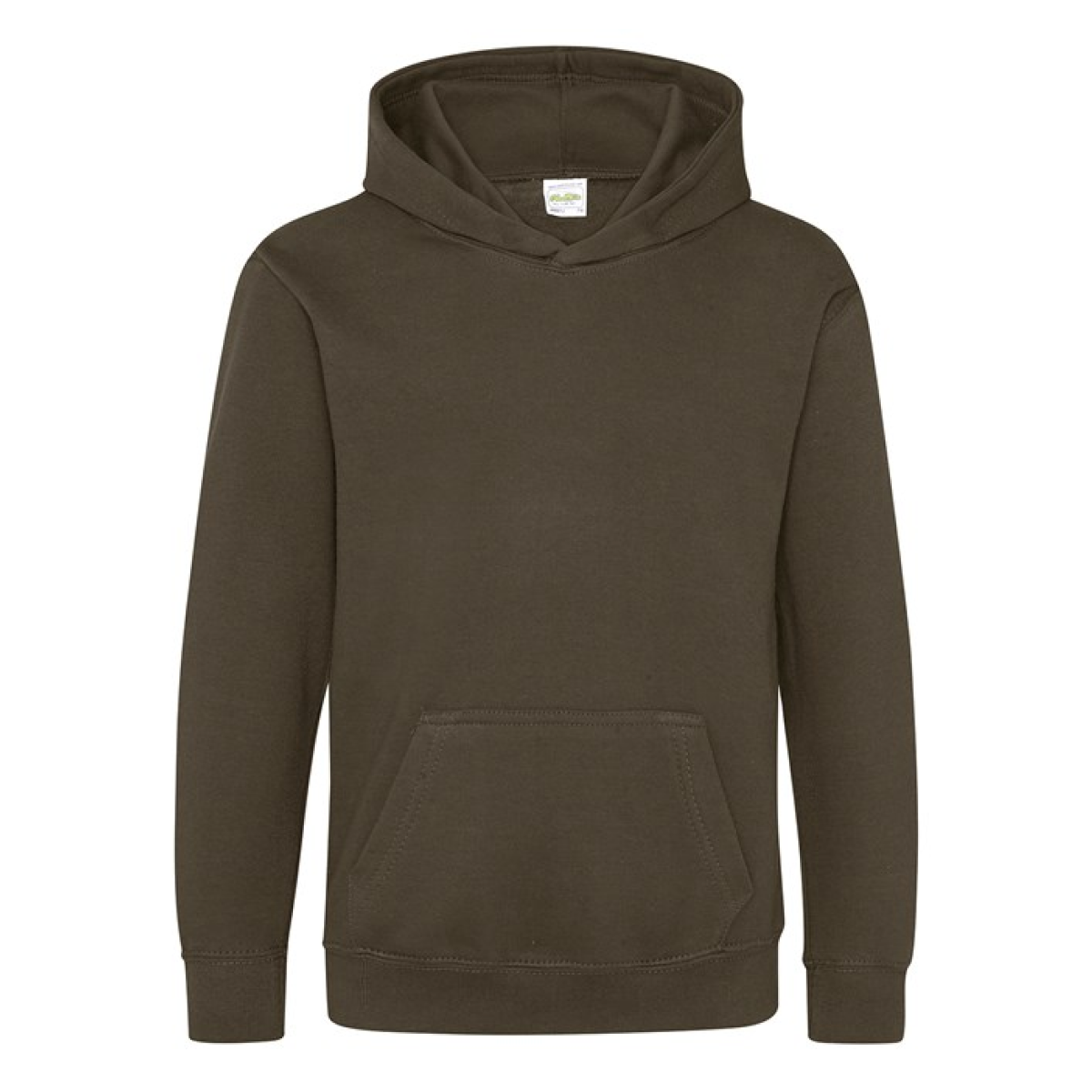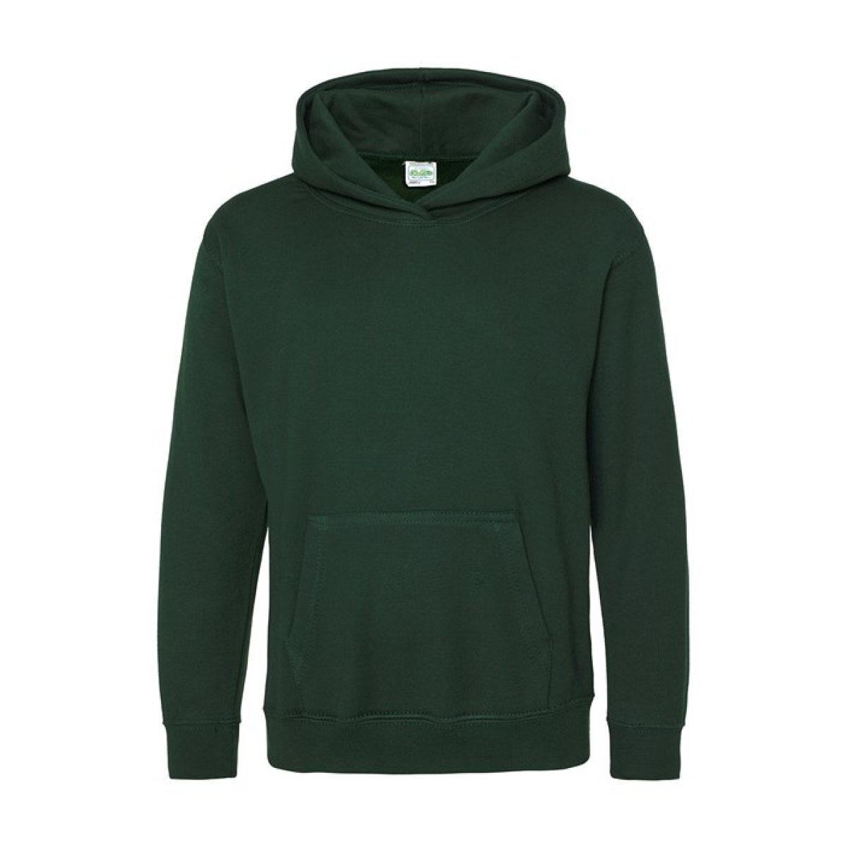 Single Jersey back neck tape for comfort. Double fabric hood without drawcord, in line with European childrenswear legislation. Front pouch pocket. WRAP certified.