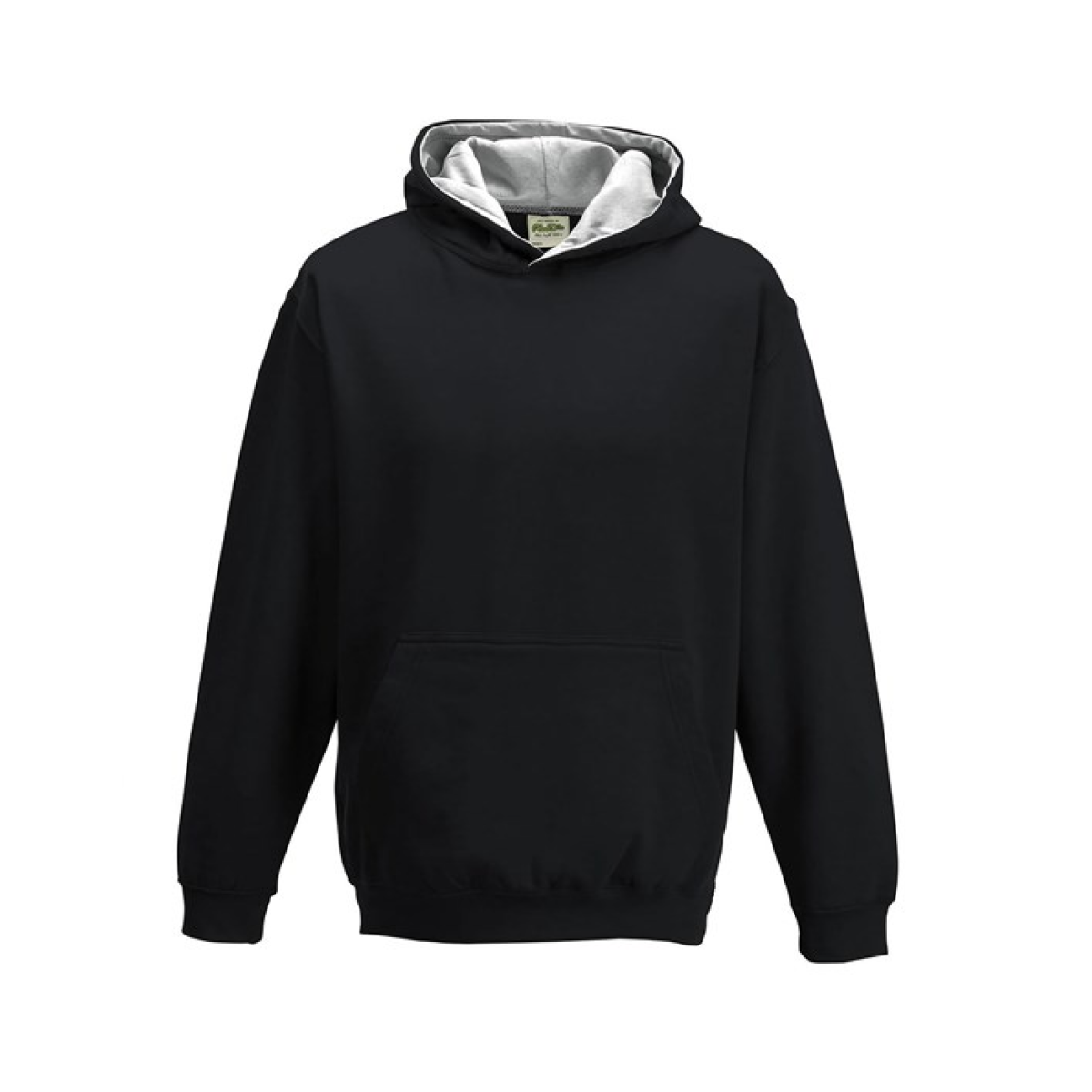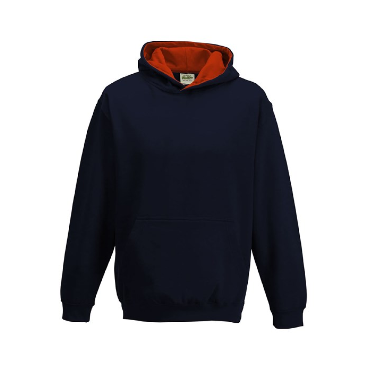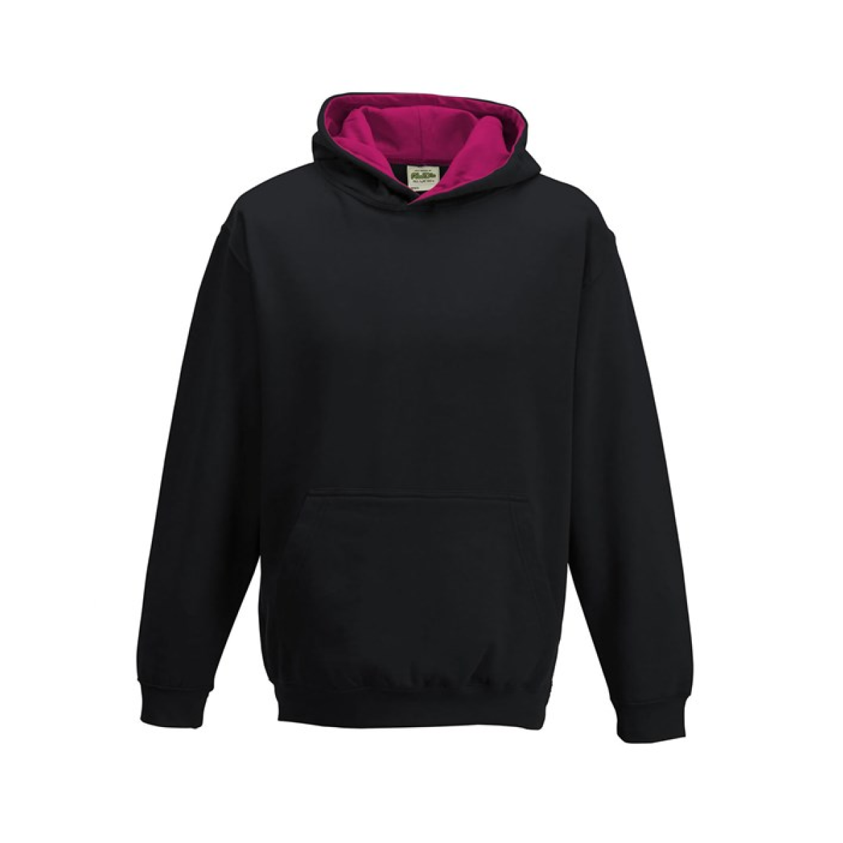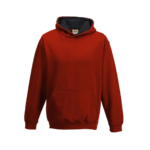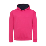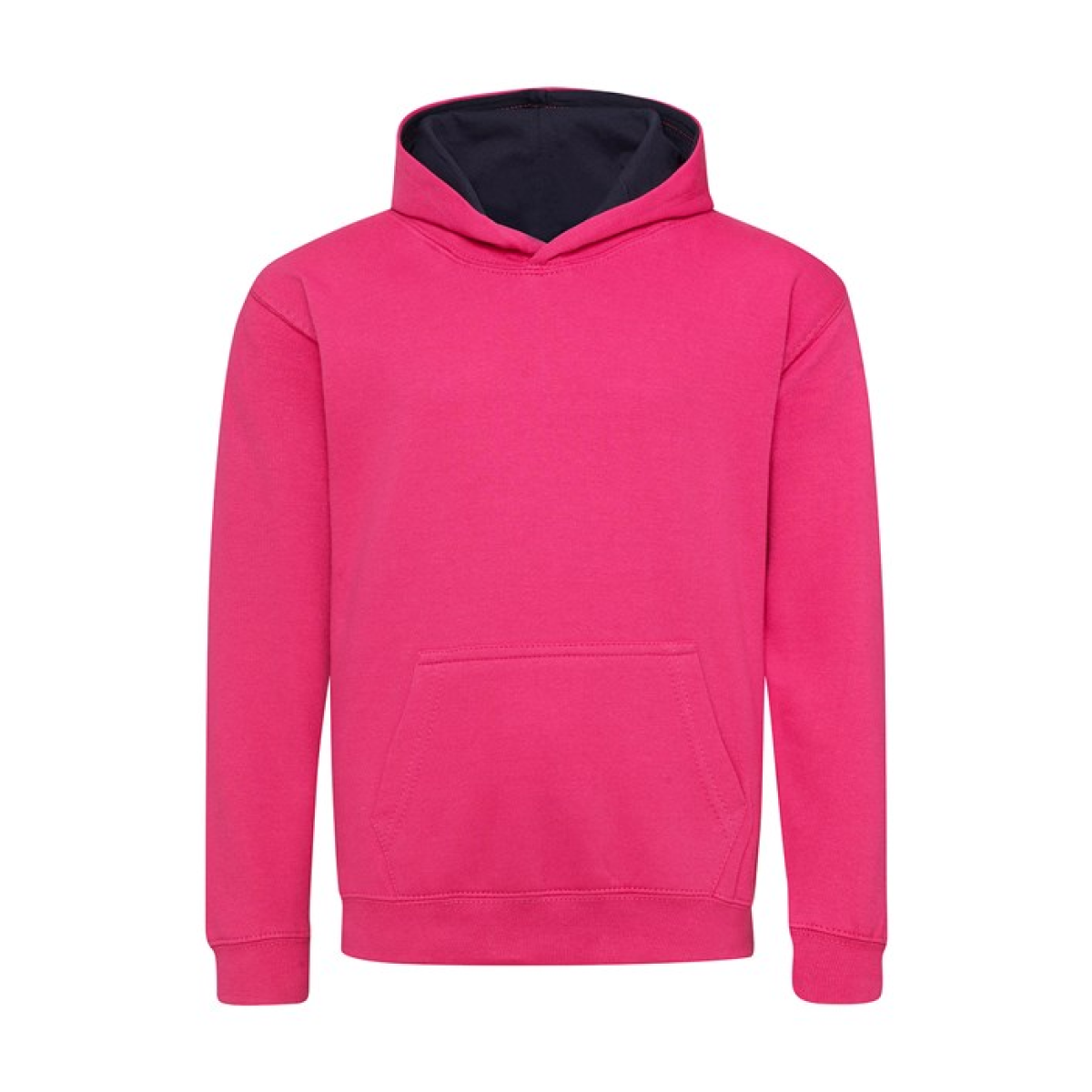 Twin needle stitching detail, double contrast hood with contrast inner. Kangaroo pouch pocket. Ribbed cuff and hem. Soft cotton faced fabric creates ideal printing surface. Brushed inner fleece.