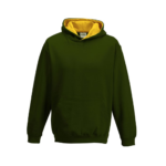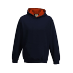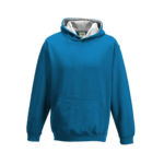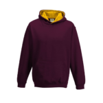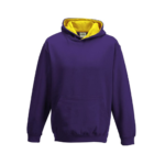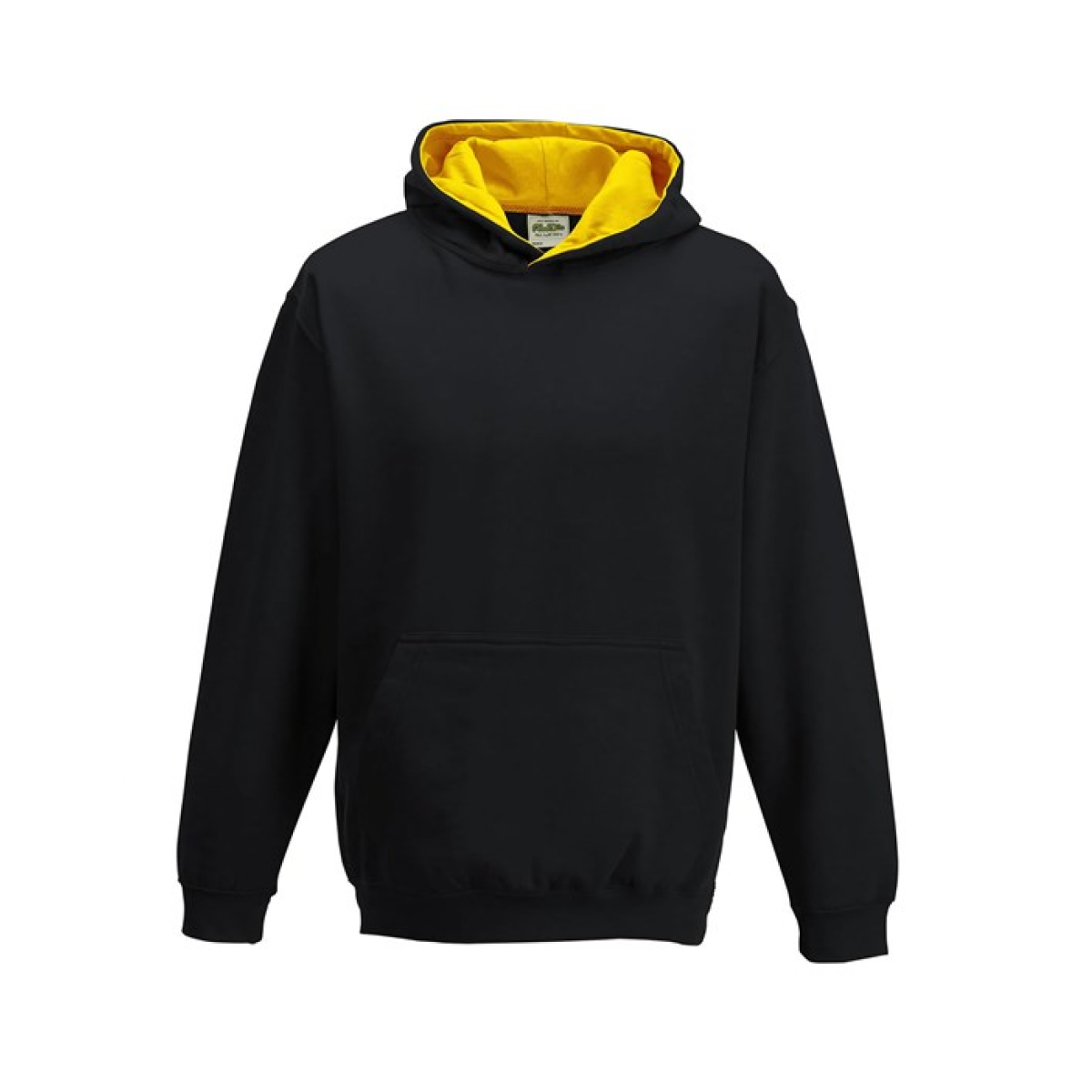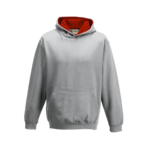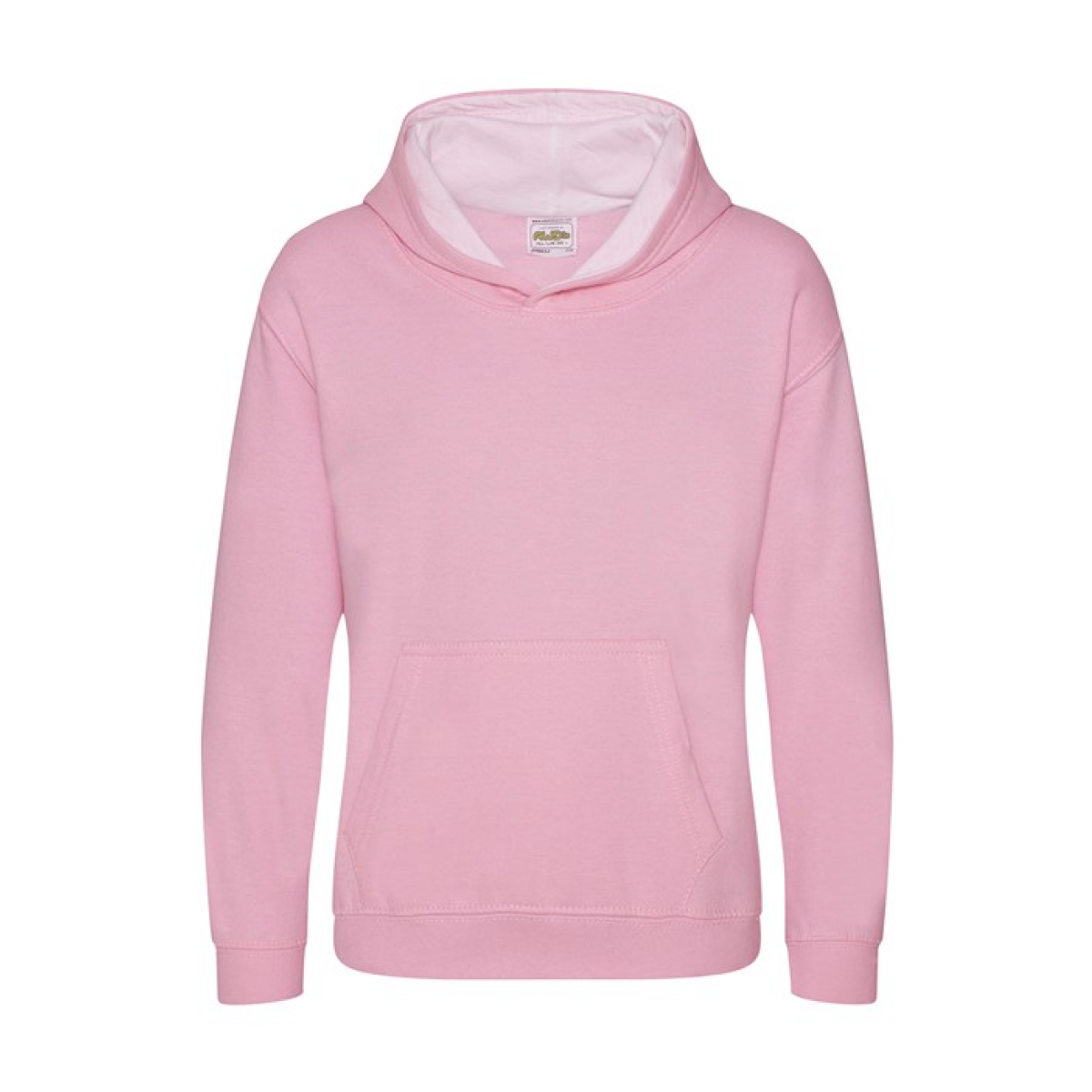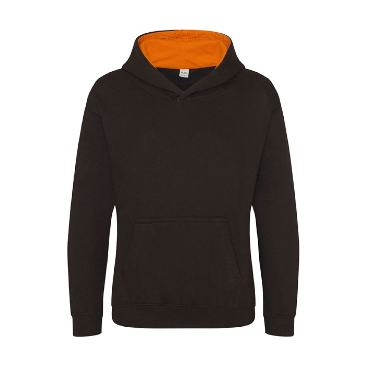 Twin needle stitching detail, double contrast hood with contrast inner. Kangaroo pouch pocket. Ribbed cuff and hem. Soft cotton faced fabric creates ideal printing surface. Brushed inner fleece.