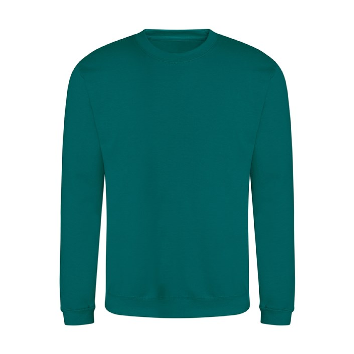Crew neck sweat. Set-in-sleeves. Taped neck. Stylish fit. Soft cotton faced fabric creates ideal printing surface. Simple tear out label makes it perfect for rebranding. Twin needle stitching detailing. Ribbed collar, cuff and hem. Brushed inner fleece.
