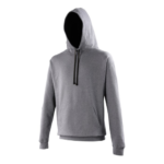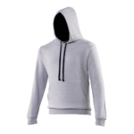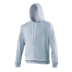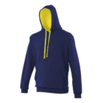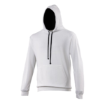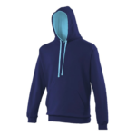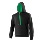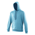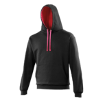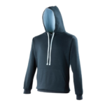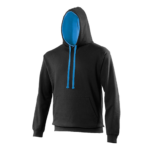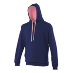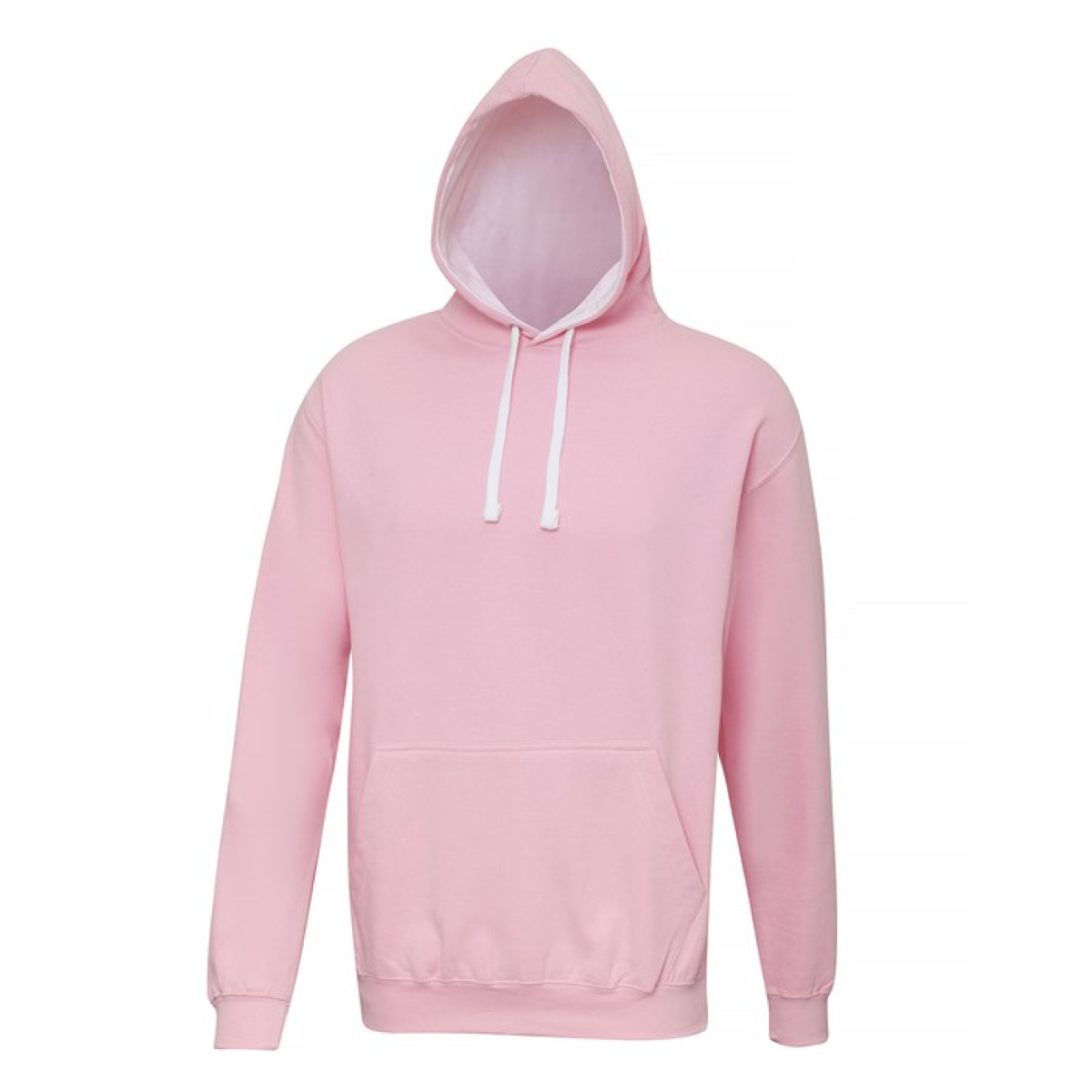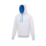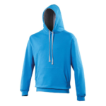 Twin needle stitching detailing, double fabric hood with contrast inner, contrast flat lace drawcords. Kangaroo pouch pocket. Ribbed cuff and hem. Soft cotton faced fabric creates ideal printing surface. Simple tear out label makes it perfect for rebranding. Brushed inner fabric.