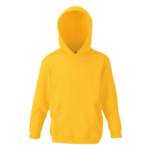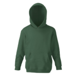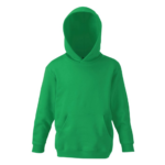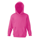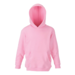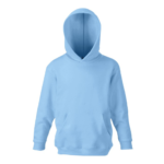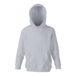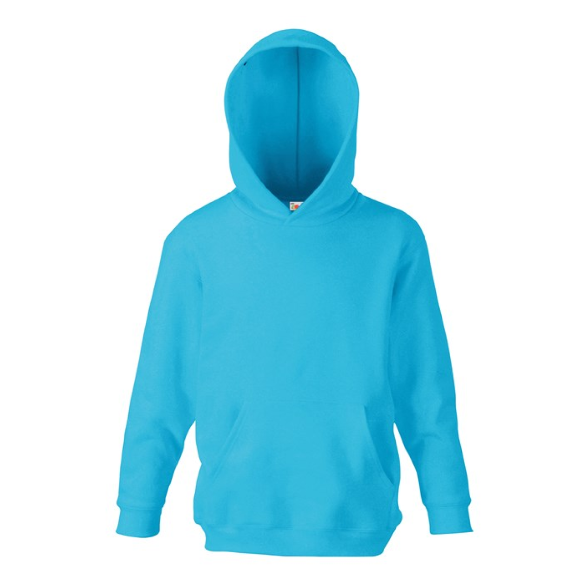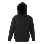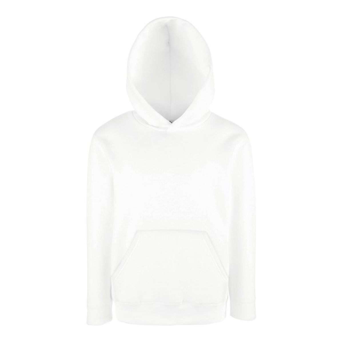 Single Jersey back neck tape for comfort. Double fabric hood without drawcord, in line with European childrenswear legislation. Front pouch pocket. WRAP certified.