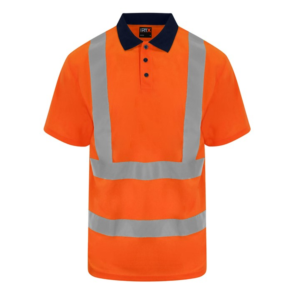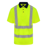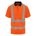 Certified EN ISO 20471:2013+A1:2016. RIS-3279-TOM ISSUE 1:2016 (Orange only). HV Orange/Navy & HV Yellow/Navy – Class 2. Ribbed contrast colour collar. 3-button placket, contrast colour buttons plus 1 spare. Twin-needle stitching on shoulder. Twin-needle stitching on sleeve and bottom hem. Side seam vents. Over shoulder and around body reflective tapes. Around body tape finishes before the side seam for comfort and ease of fit.